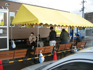 帰ります、まだ外のテント内のベンチには10人ほどが並んでいました。