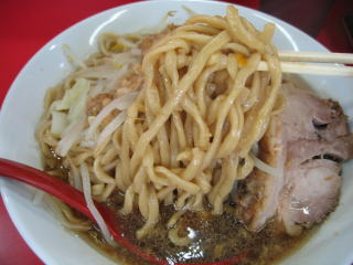 食べるのに時間がかかりますが、麺伸びしない、しっかりとした美味しい太麺です。