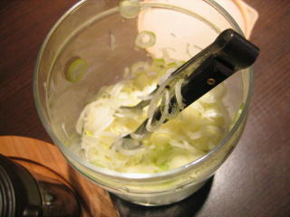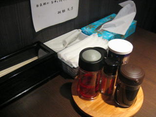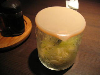 テーブル上のタッパー、輪切りのネギがサービスです。