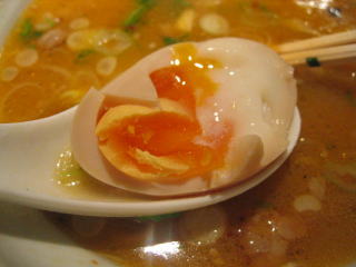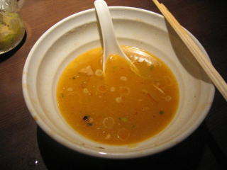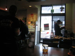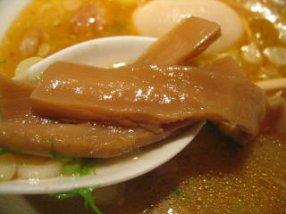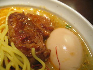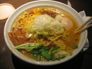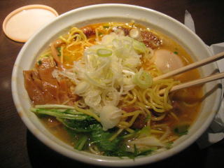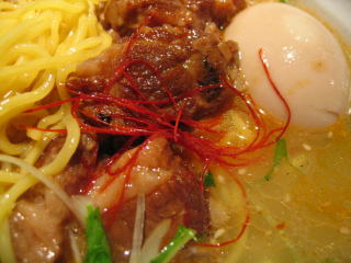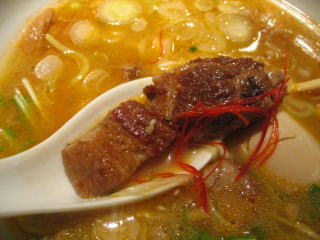 大盛に比べ、麺が少ないためスープの下に麺が見えません、またお肉の量が少ないようです。