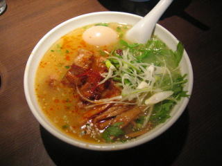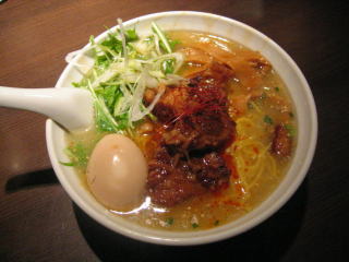 「牛骨牛肉白湯麺(数量限定)」880円の「大盛り」(100円)にします。