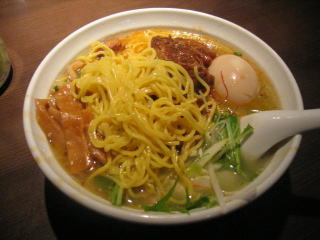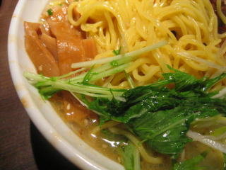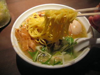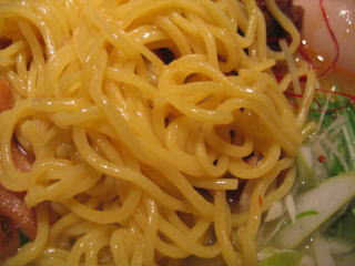 麺は中太麺、黄色く透き通って綺麗な麺です。