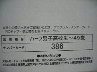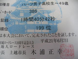 平成21年6月7日、上越市の天地人ロードレース(高田城ロードレース大会10周年記念大会)のハーフに参加しました。