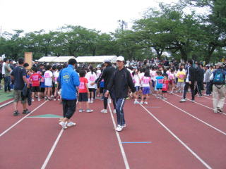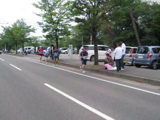 まだまだたくさんのランナーが陸上競技場目指して走っています。