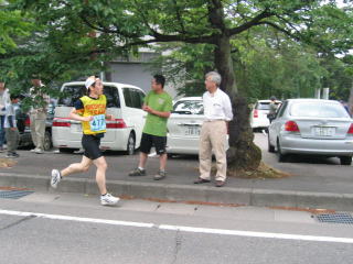 黄色いビブスの日医ジョガーズのメディカルランナーさん、ご苦労様です。
