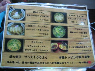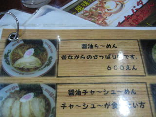 メニューの左上、「醤油らーめん」600円ライス無料にします。