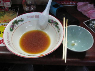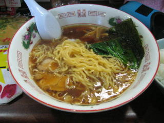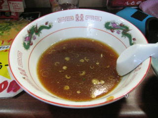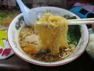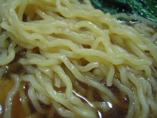 スープはキラキラとしたラードの浮いた濃い目の醤油味です。