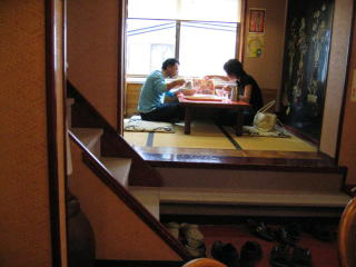 左手前に6人掛け小上り席、左手奥に4人掛け小上り席、階段もあるので二階席もあるようです。