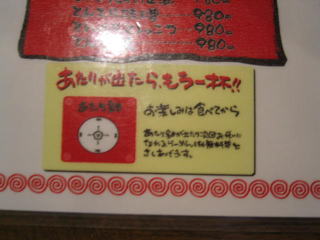 ドンブリの底に「あたりが出たらもう一杯!!」との事でしたがハズレでした。