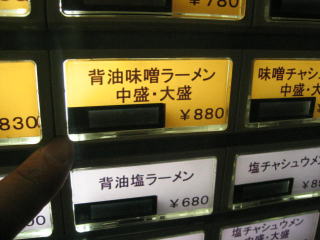 今日は「背油味噌ラーメン大盛」880円と味噌ラーメン730円です。