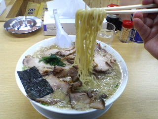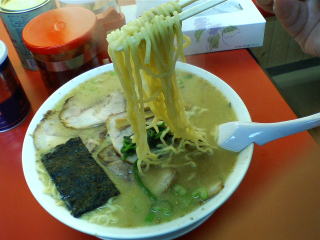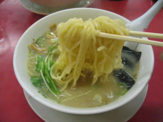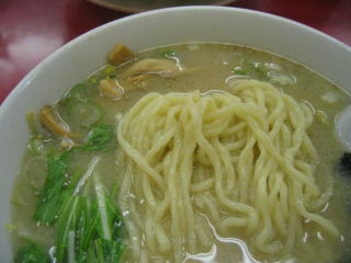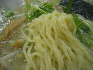 麺は白めで中太麺中縮れで柔らかめです。
