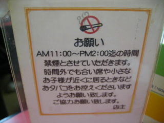 午前11時から午後2時までは禁煙のようです。