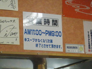 営業時間です、定休日は不明です。