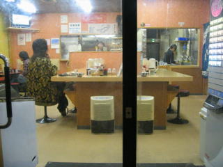 今日はカウンター席の左、奥から2番目です、お昼時で一人のお客さんが多く、店内は半分位の入りです。
