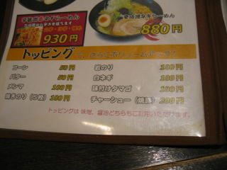 無料トッピングは50円から200円まで、数種類あります。