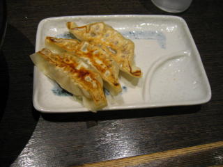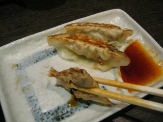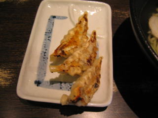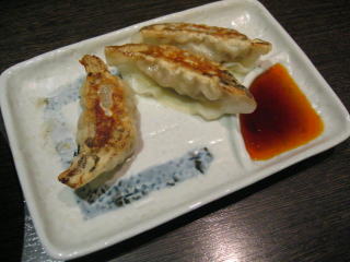 サービスの餃子は3個です。