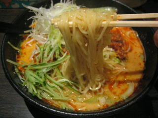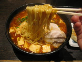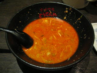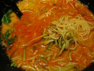 一見して辛そうなラーメンに変身しました。
