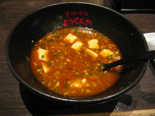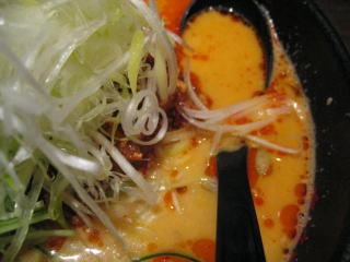 ベージュ色の胡麻スープにピリ辛ラー油が浮いています。
