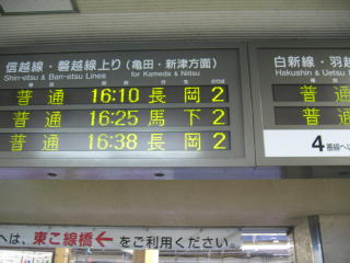 16時38分の電車は長岡駅で宮内へ行く電車の接続が悪いので、急いで16時10分の長岡行きに乗りました。