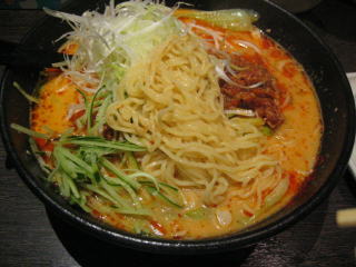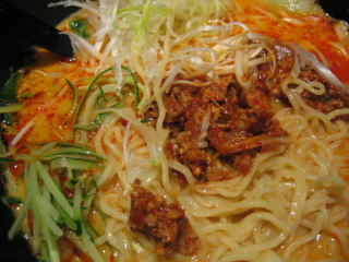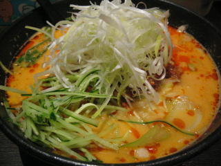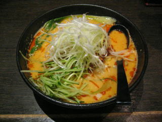 「坦々麺」大盛り無料、白ねぎ、餃子付です。