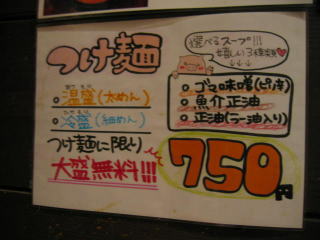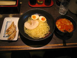 何にしようか迷いましたが、つけ麺のゴマ味噌(ピリ辛)の温盛太麺の大盛無料と「ハッピーパス」で餃子と味玉をお願いしました。