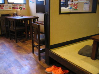 お店の奥に厨房とカウンター席、窓側にテーブル席、奥に小上がり席です。
