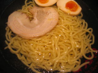 チャーシュー1枚と半味玉2個です。