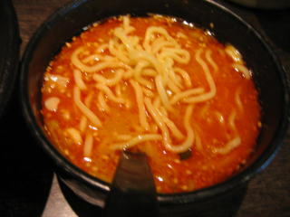 辛そうな熱いつけだれです。