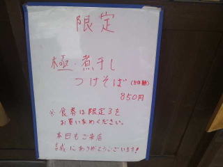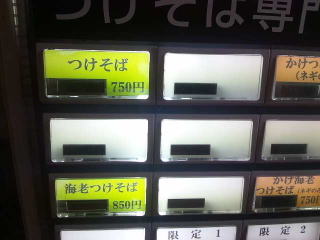 事前にネットで調べてきました、そして左上の法則で「つけそば」750円です。