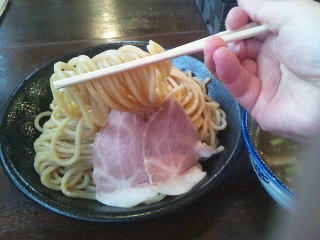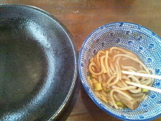 山盛りのため麺が多く、つけダレが冷えてきました。