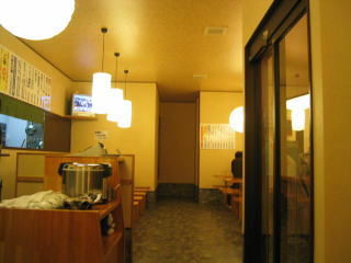 玄関入って正面に厨房、左側に小上りテーブル席3席、右側には厨房側にカウンター席、窓側にテーブル席のようです。
