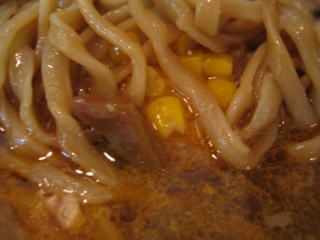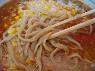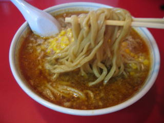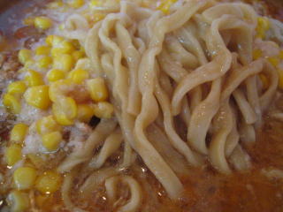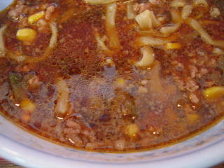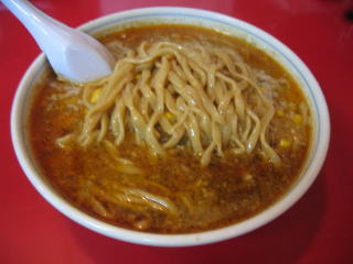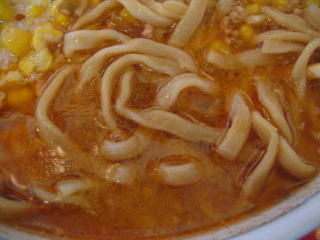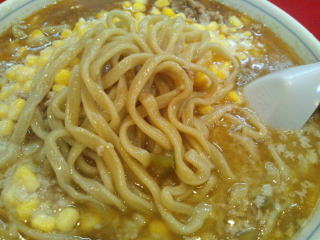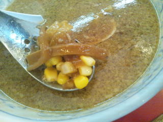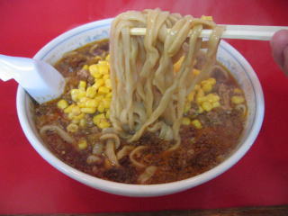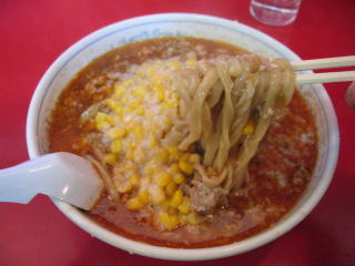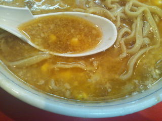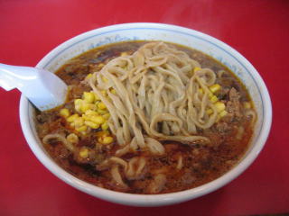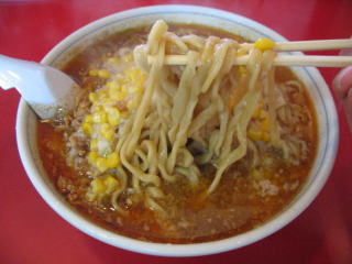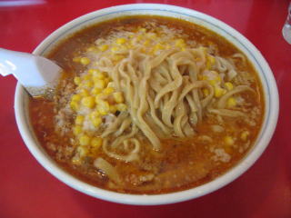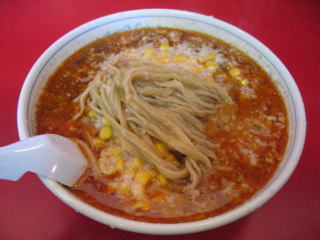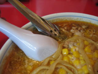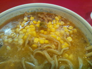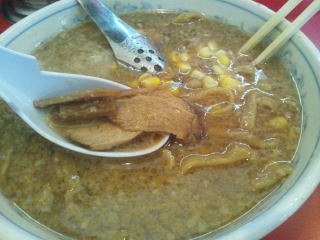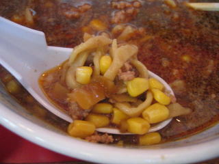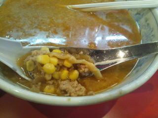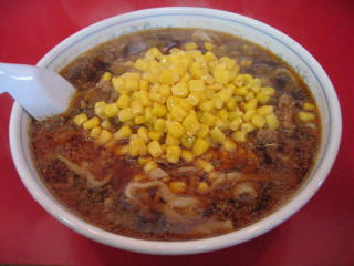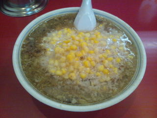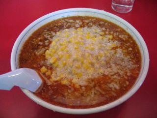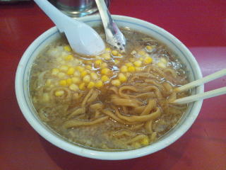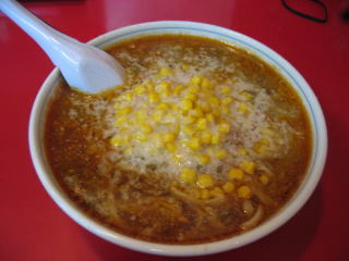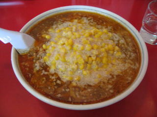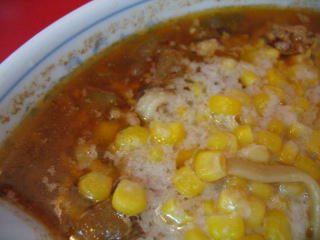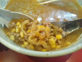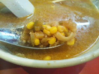 食券に書いてある「コーンラーメン(辛い)」というほど、辛くはありません、ちょっとピリカラ程度で美味しくいただけます。