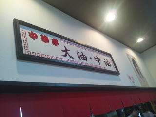 以前はカウンター席の上には大きなメニュー表があったのですが、今は「大油・中油」と書かれた額がかかっています。