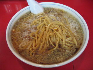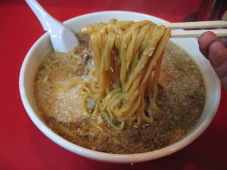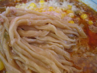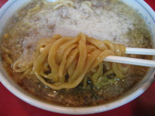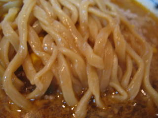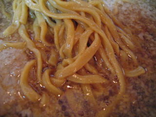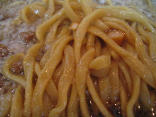麺は平打ちの太麺、この手の麺の中ではモチモチでコシがある方です。