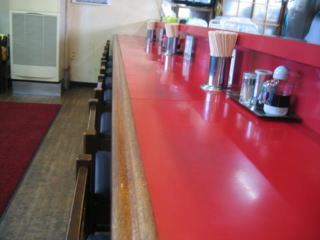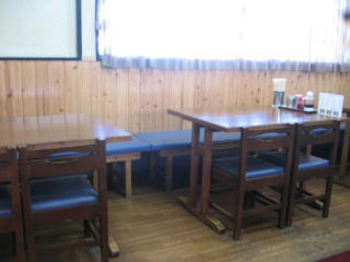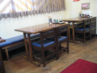 店内は奥に厨房とカウンター席、手前窓側にはテーブル席です。