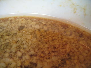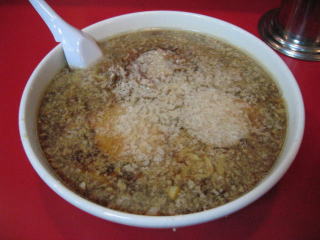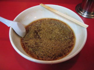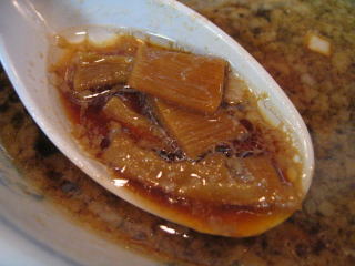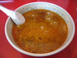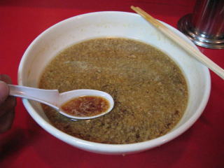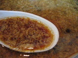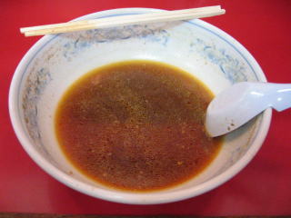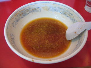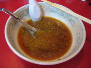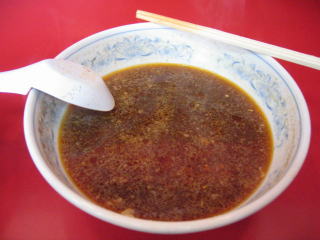 醤油ベースでわずかにラー油らしきものが浮いています。