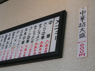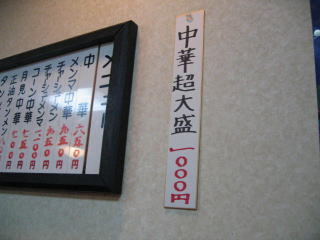 怖い物見たさ?で「中華超大盛1.000円」も考えましたが、まだそんなにお腹が空いていません。