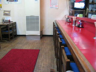 お店は正面奥に厨房とカウンター席、右側奥に小上がり席。