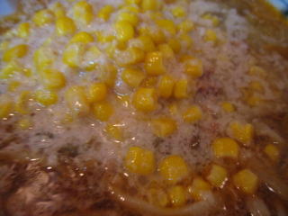 「コーンラーメン」800円の大盛100円、背油入りです。