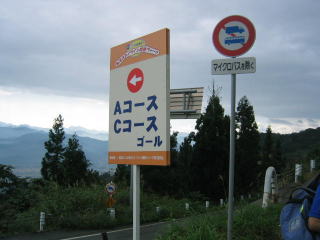 ゴールへの看板があり、これから急な下り坂、膝が痛くなってきました。