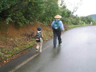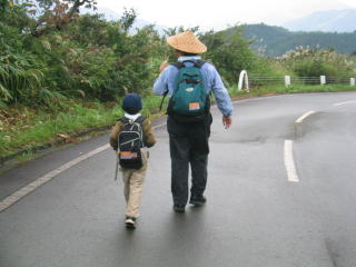 サンドガサのお父さんと、小学生低学年の男の子も17kmを目指しているようです。