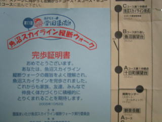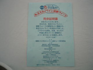 「完歩証明書」、あいにくの天候となりましたが無事17km完歩でき、楽しい一日でした。