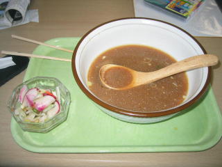 おしんこも付いていますがこれもしょっぱい、スープ同様ほとんど残してしまい、申し訳ありません。