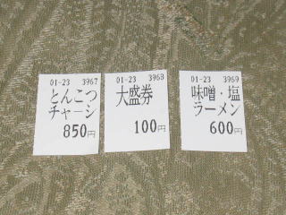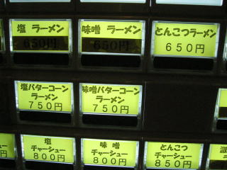 今夜は「とんこつラーメン」650円の大盛100円、「塩バターコーンラーメン」750円の大盛100円にします。