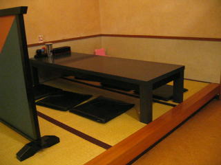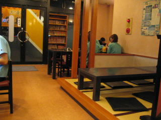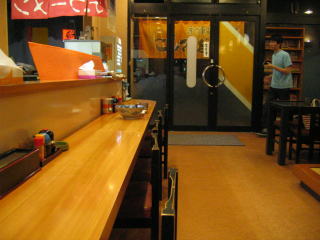 お店は中央通路の右手に厨房とカウンター席、左手奥に小上がり席、手前にテーブル席です。
