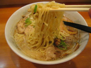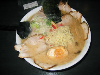 スープはコッテリとした味の濃いとんこつ醤油のような感じです。