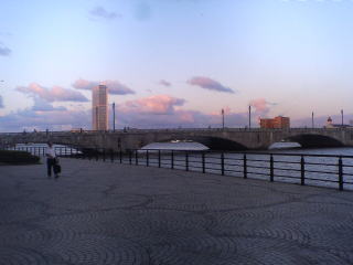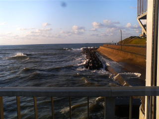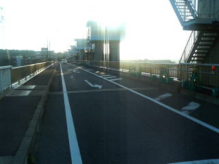 マラソンの時は必死で気が付きませんでしたが、橋の上の道は一方通行で、本当に海間際でした。