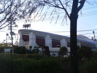 新潟マラソンのゴールの陸上競技場が見えてきました。