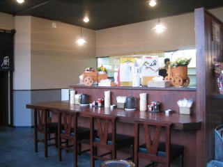 お店の中央に向かい合う形のカウンター席、右奥に厨房です。