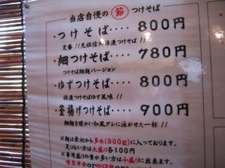 色々な「つけそば」がありますが、迷った時は左上の法則?「つけそば」800円にします。